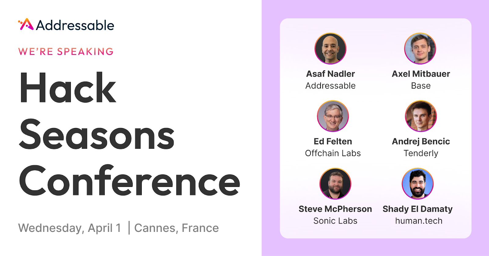Addressable will be there for both EthCC and the Hack Seasons Conference. And at HackSeasons on April 1, our Co-Founder Asaf Nadler will be moderating the panel that puts that question directly on the table.